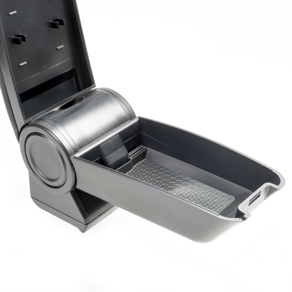 Adjustable armrest on the centre console, with vehicle-specific adapter.