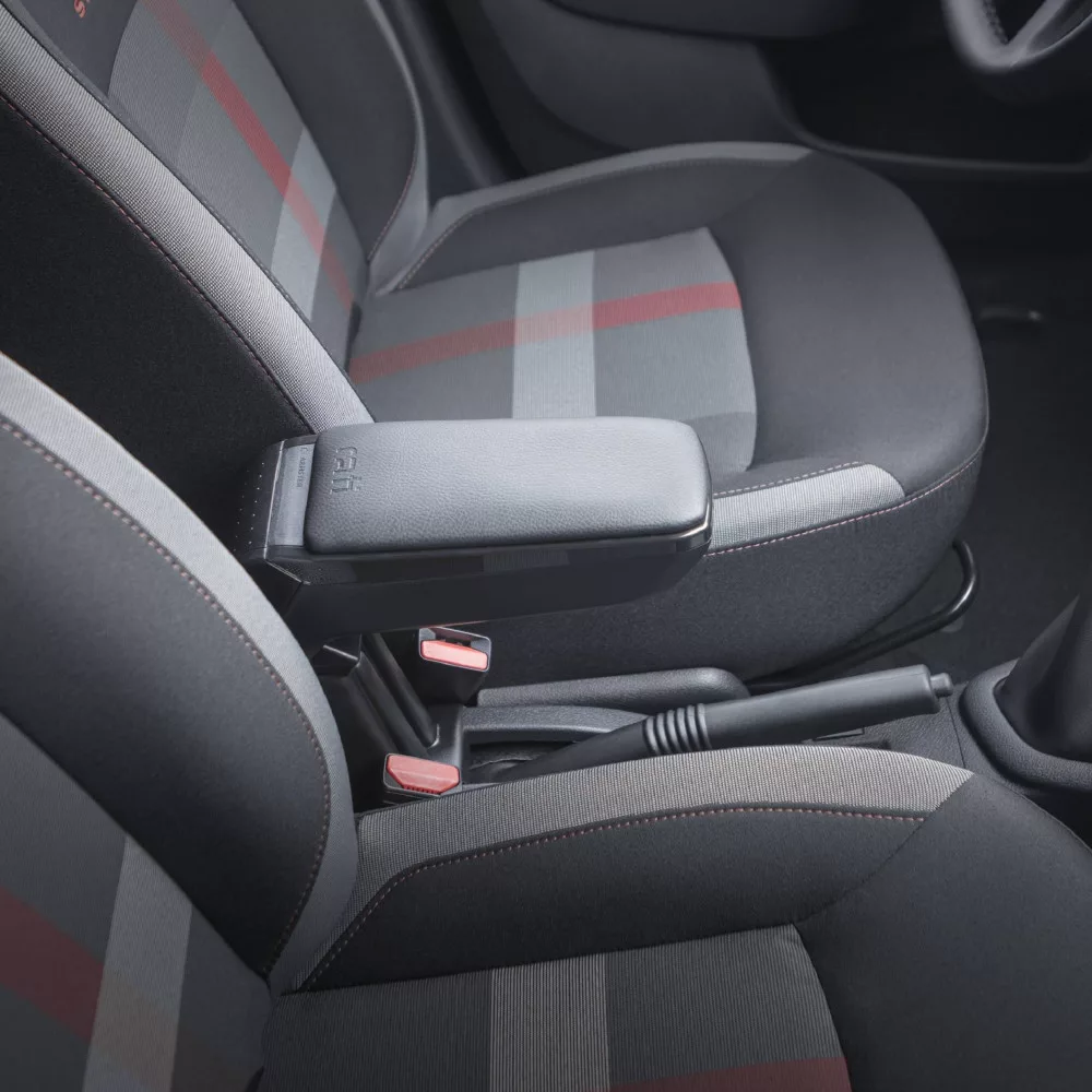 Comfortable armrest on the centre console, with vehicle-specific adapter.