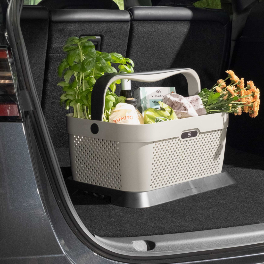 TESLA BASKET by RATI for Tesla Model Y & Model 3 – Smart car basket for shopping & outdoor activities with fixing frame, non-slip and stable while driving.